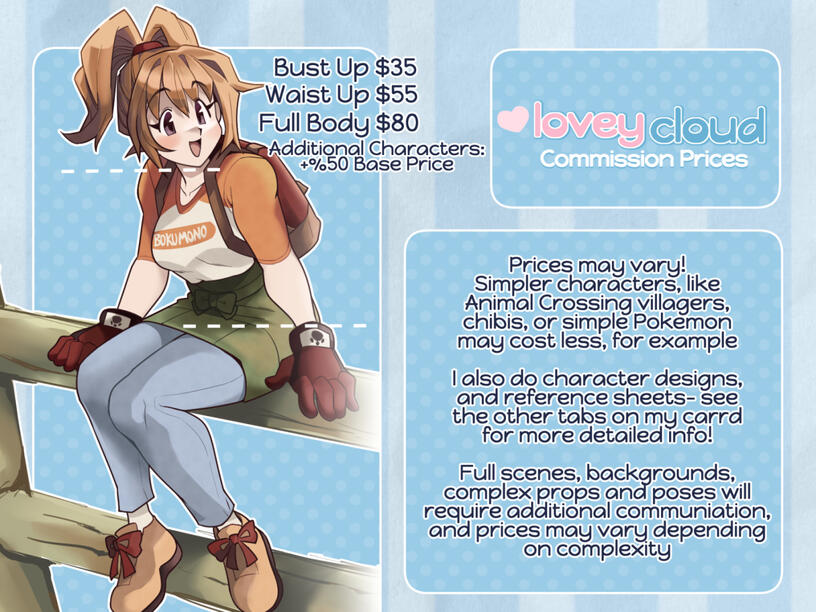ref sheets: these will be priced by character count like a normal commission!__character design: extra communication is required for these!